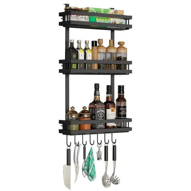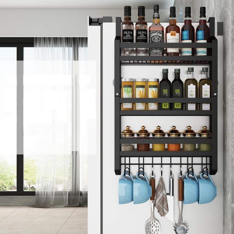 • There are three shelves and one hanging rack in the refrigerator storage. The bottom has 7 hooks for oven gloves, blenders, spatulas, and other tools. Ideal for holding frequently used utensils, tools, and gadgets.